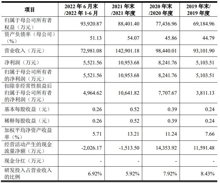 财务方面,于2019年、2020年、2021年、2022年上半年,中远通营收分别约为9.31亿元、9.84亿元、14.29亿元、7.30亿元;同期,净利润分别约为5103.51万元、8241.76万元、1.10亿元、5521.56万元;同期,公司研发费用分别为7849.72万元、7792.43万元、8463.65万元和5050.44万元,占当期营业收入的比例分别为8.43%、7.92%、5.92%和6.92%。