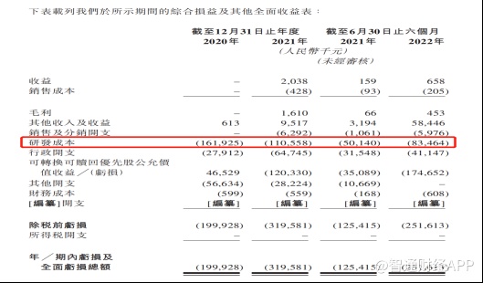 需要注意的是,由于产品处于研发阶段或商业化初期,科笛集团的业绩尚未实现盈利。2020年至2022年上半年,科笛集团分别实现营收为0、203.8万元、65.8万元;同期净亏损分别为1.999亿、3.195亿和2.52亿元,累计亏损约为7.7亿元。