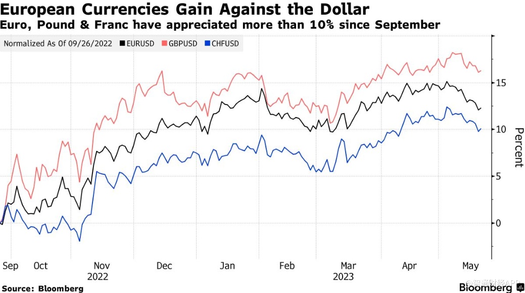 Bloomberg Intelligence预计欧元兑美元汇率将在年底触及1.20,而英镑和瑞郎兑美元汇率也料走强。巴克莱银行的分析显示,目前只有不到40%的公司对汇率持积极看法,低于2022年第三季度的60%以上。