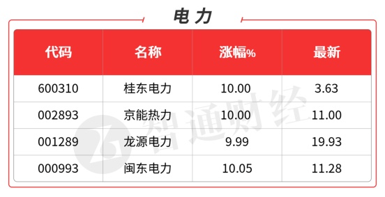 资金开始寻找其它出路,随着消费旺季电力供应偏紧以及新型电力系统建设推进,电力产业链今日再度崛起,电力和虚拟电厂两大分支领涨。龙头杭州热电(605011.SH)7天6板,桂东电力(600310.SH)4天2板,众智科技(301361.SH)、友讯达(300514.SZ)均20CM涨停;首板有京能热力(002893.SZ)、闽东电力(000993.SZ)、龙源电力(001289.SZ)等。