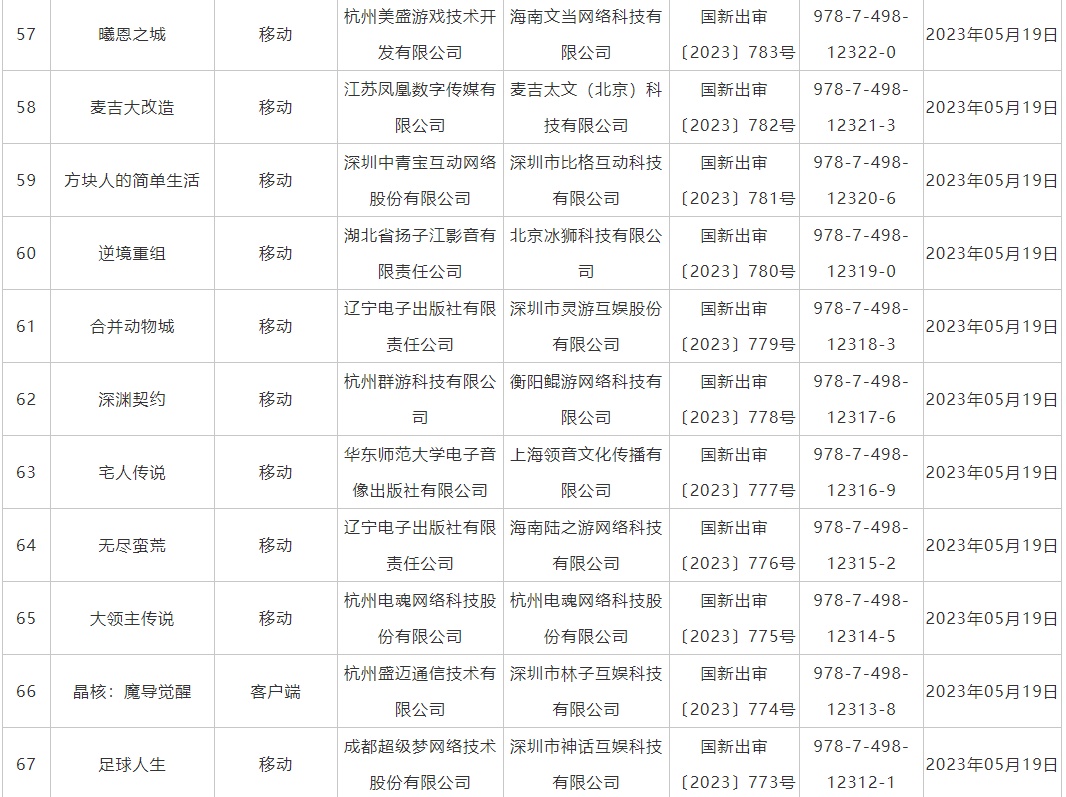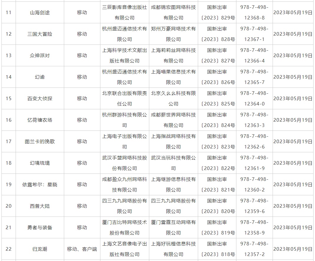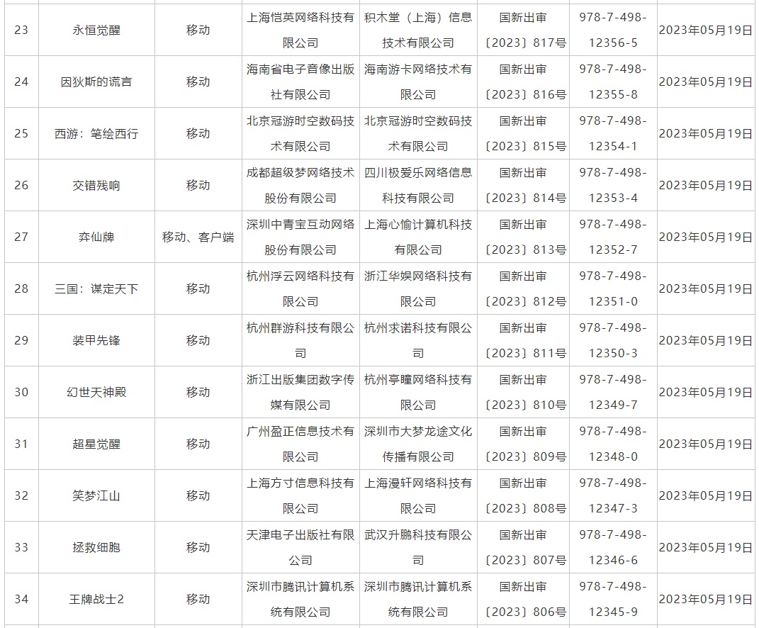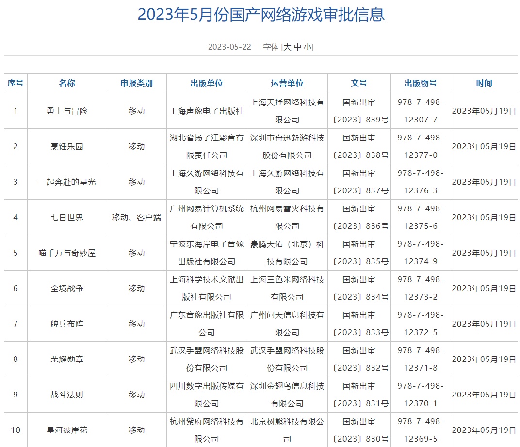 5月国产网络游戏审批信息公布 腾讯(00700)、网易(09999)等公司86款游戏获批