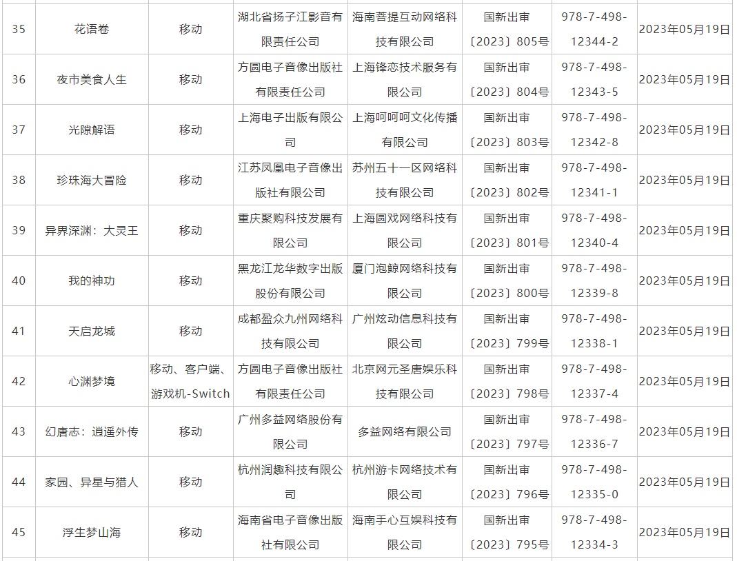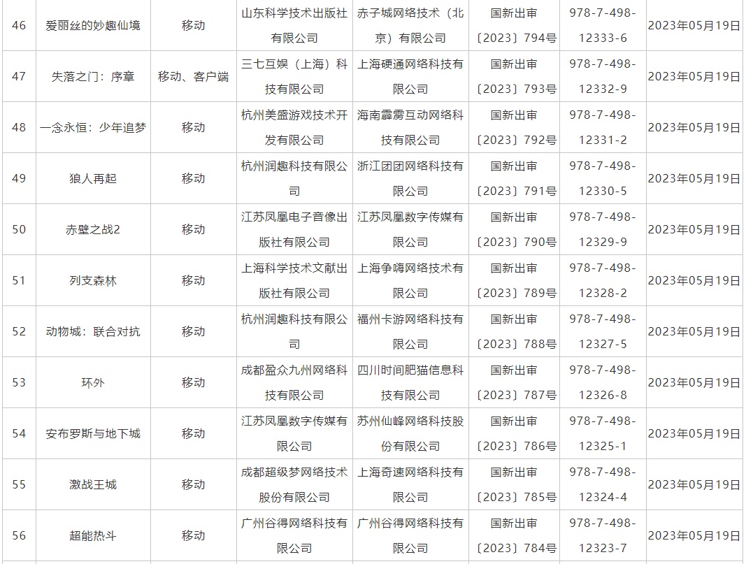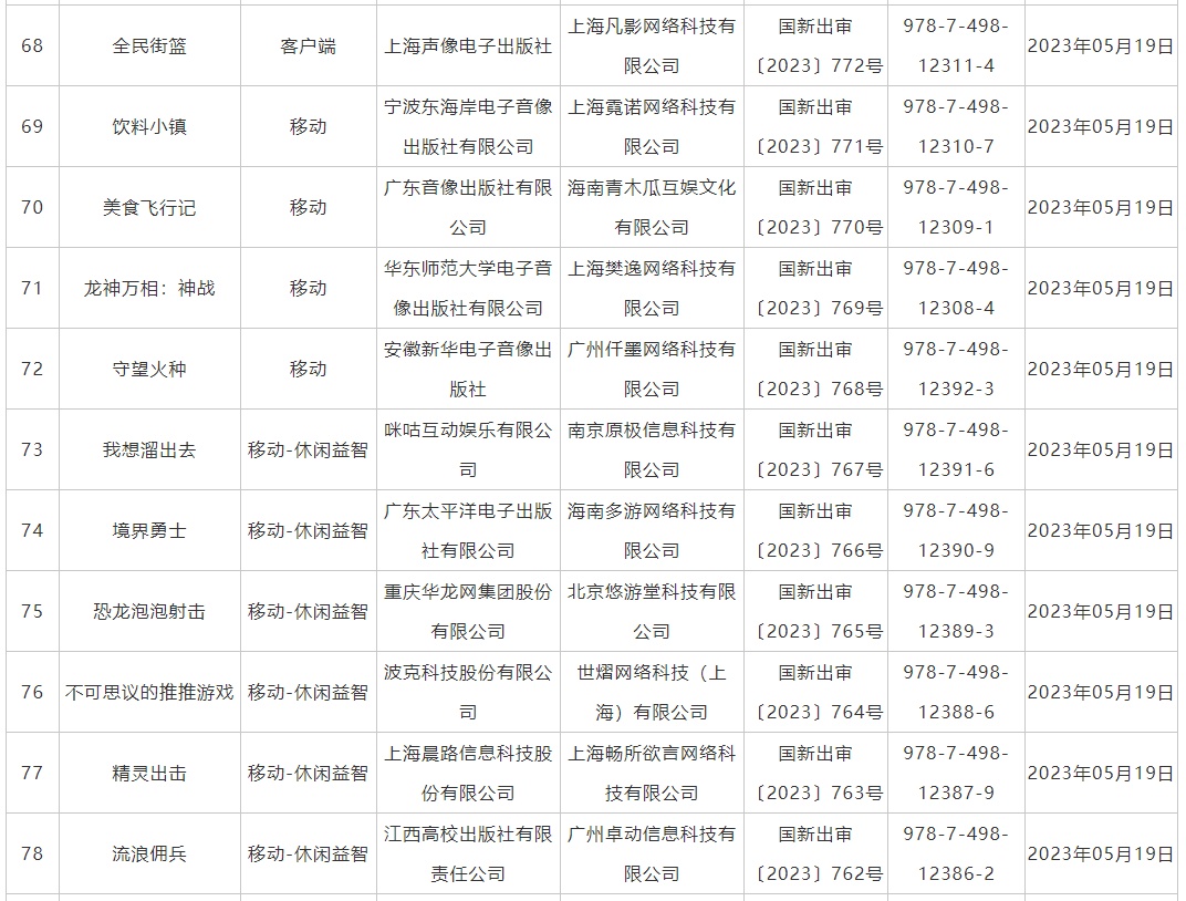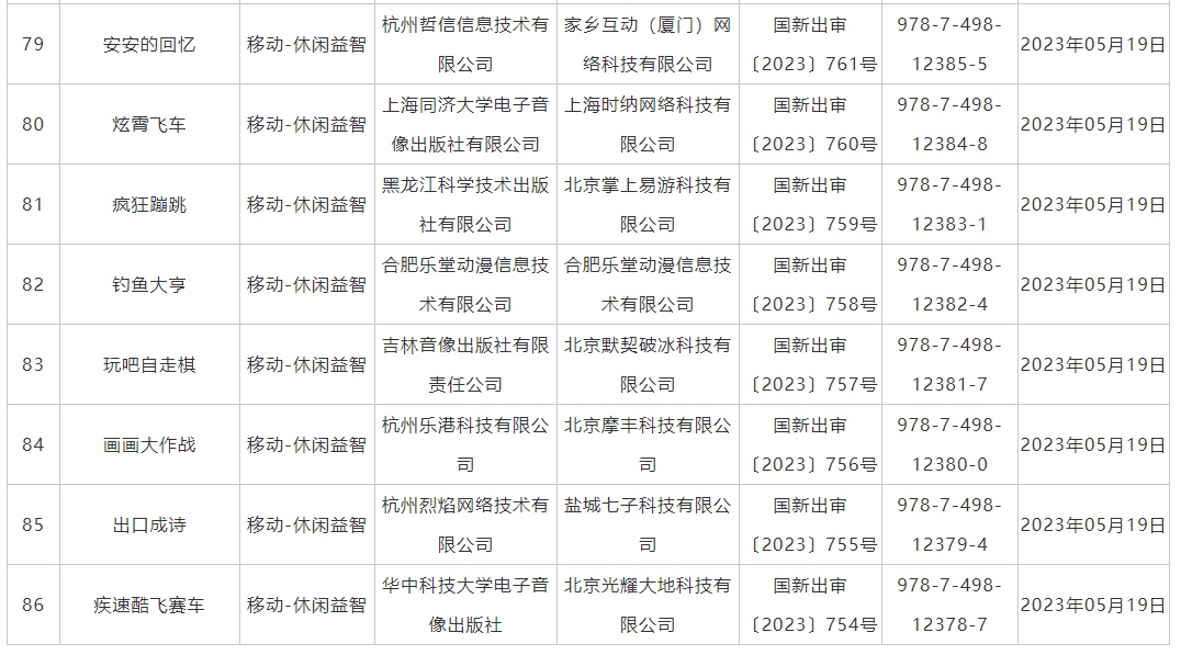 5月国产网络游戏审批信息公布 腾讯(00700)、网易(09999)等公司86款游戏获批