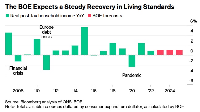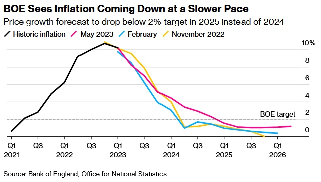 英国央行预计通胀将以较慢速度下降,预计在2025年回落至2%
