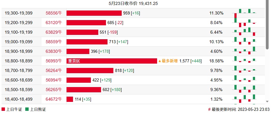 牛证街货重货区在18800-18899区间,该区间最新牛证数量为1577张,较上一交易日增加448张;最多新增在同一区间。