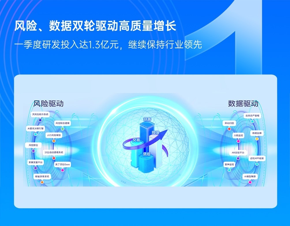 乐信坚持数据和风险双轮驱动,追求高质量增长。一季度,研发投入达1.3亿元,继续保持行业领先。