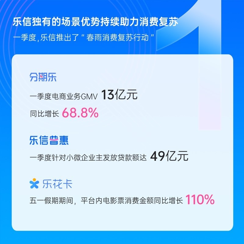 乐信旗下全场景信用消费产品乐花卡,通过多种活动方式支持消费复苏,五一假期期间,平台内电影票消费金额同比增长110%。