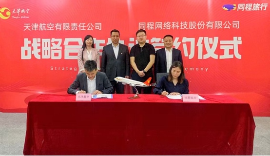 5月23日下午,同程旅行(00780)与天津航空战略合作签约仪式在天津举行, 双方将在优质出行服务开发、精品航线打造、便捷出行服务推广等方面开展全方位合作,进一步深化双方伙伴关系。天津航空党委书记王煜,天津航空总裁助理王洁明,天津航空市场销售部总经理方叶松,同程旅行AVP、出行事业群COO龚小磊,同程旅行出行事业群机票华北大区总经理安国军,同程旅行出行事业群机票华西大区总经理刘少龙等双方代表共同出席了签约仪式。