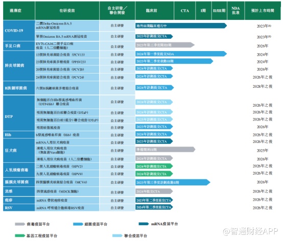 从公司目前的研发管线布局来看,公司共拥有针对14个疾病领域的22种在研疫苗,管线覆盖全球前十大疫苗品种。其中二价mRNA新冠疫苗、13价肺炎疫苗已进入临床三期阶段,但大部分产品仍处于临床前阶段。