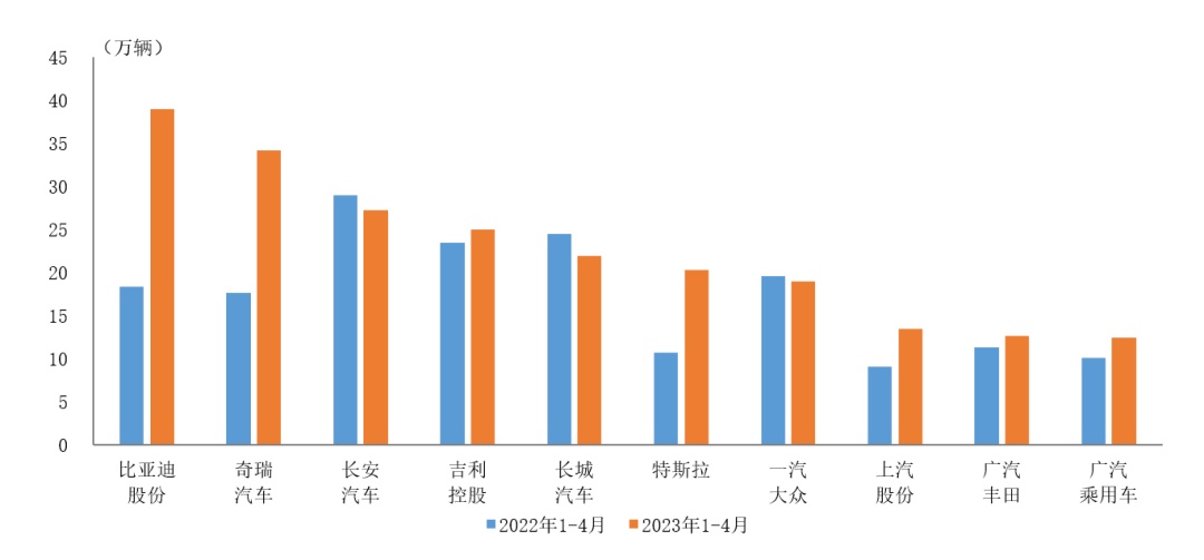 智通财经APP获悉,5月24日,据中国汽车工业协会统计分析,2023年1-4月,销量排名前十位的SUV生产企业共销售225万辆,占SUV销售总量的64.8%。在上述十家企业中,与上年同期相比,比亚迪股份(01211)增速最为显著,奇瑞汽车、特斯拉(TSLA.US)、上汽股份、广汽丰田和广汽乘用车呈两位数快速增长,吉利控股小幅增长,其他企业呈不同程度下降。