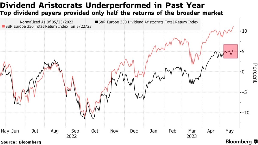 此外,随着欧洲和美国的经济衰退风险上升,各大央行加息活动何时见顶引发了激烈争论。拥有稳健资产负债表、利润增长和扩张潜力的公司受到青睐,而在经济低迷时期,派发股息的“贵族”能否继续慷慨派发股息则存在不确定性。同时,最近的银行业动荡也让交易员对金融类股保持警惕。