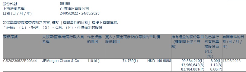智通财经APP获悉,香港联交所最新资料显示,5月17日,小摩增持百济神州(06160)7.4769万股,每股作价140.9898港元,总金额约为1054.17万港元。增持后最新持股数目约为9958.42万股,最新持股比例为8%。