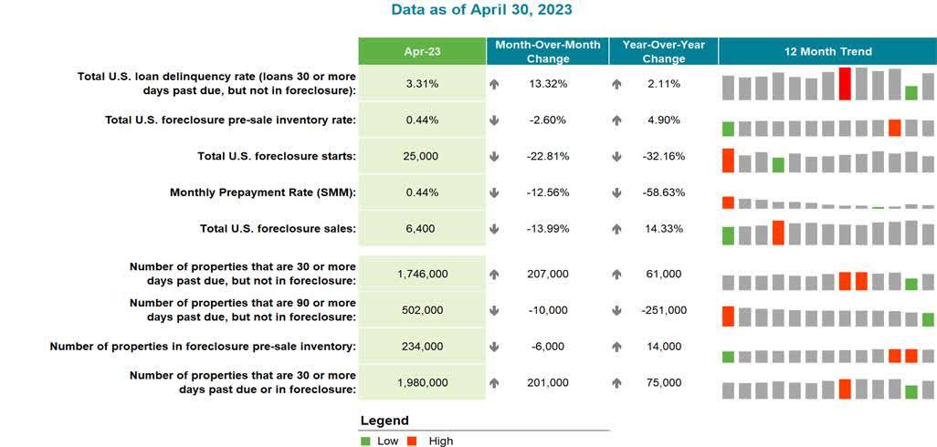 此外,4月份的丧失抵押品赎回权数量下降了23%,是自2022年9月以来的最低水平,甚至比新冠疫情前的2019年4月低大约45%。Black Knight的报告显示,4月份的贷款人主动止赎的贷款数量环比减少了6000笔,相比于2020年3月则减少了6万笔,降幅为21%。