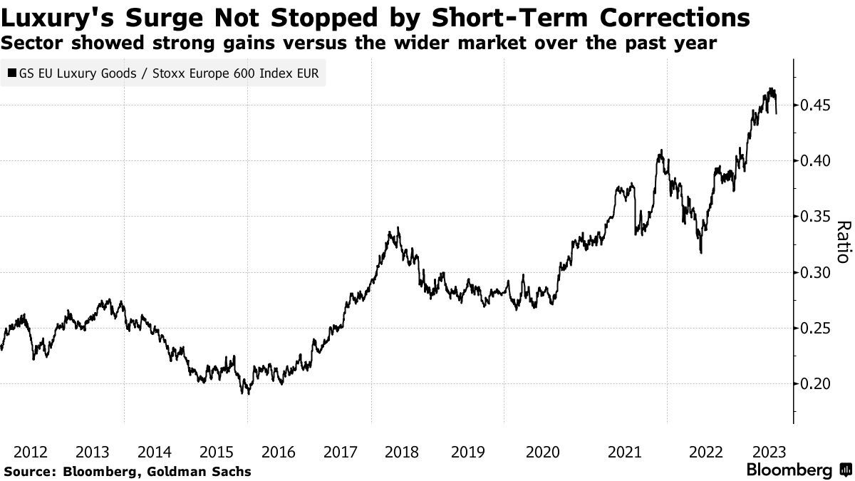奢侈品涨势免疫于加息周期——过去一年,奢侈品行业相对欧股大盘表现强劲