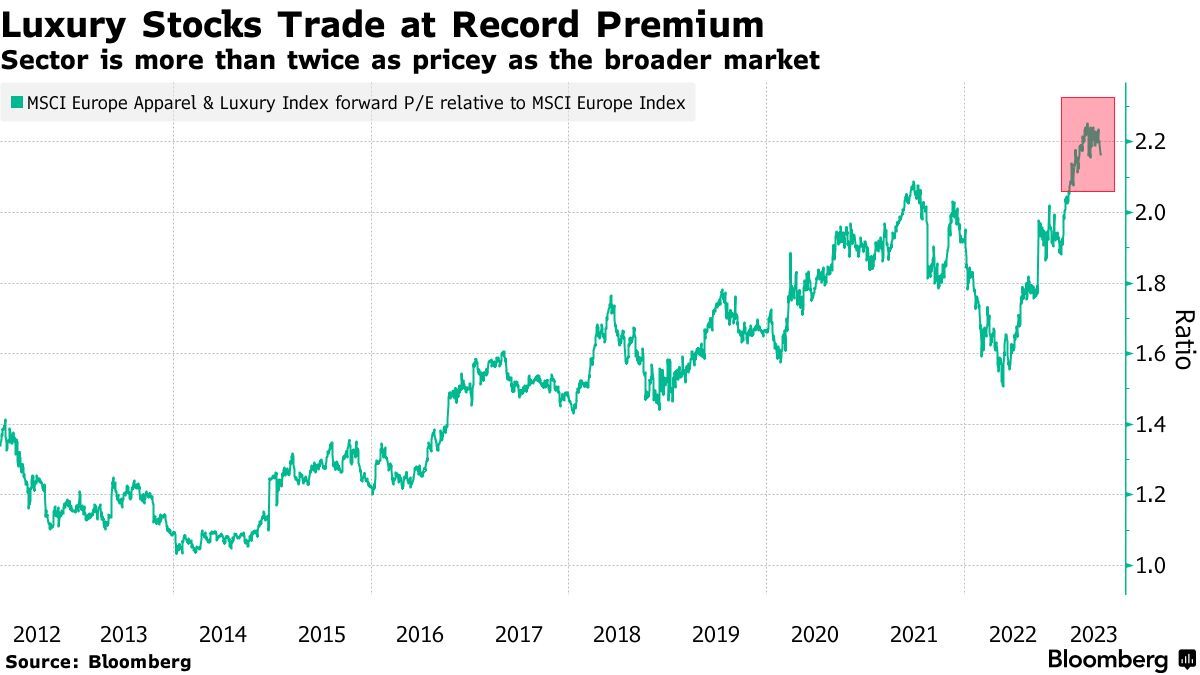 奢侈品股溢价创历史新高——奢侈品板块的价值是整体市场的两倍多