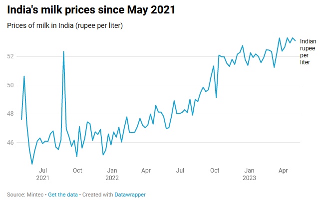 2021年5月以来的印度牛奶价格