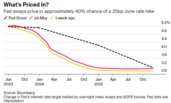 距离美国政府资金耗尽的预计日期还有一周多一点的时间,对6月份加息的预期可能表明,市场不仅相信两党会达成协议,而且相信协议还不会削减开支,从而削弱经济。