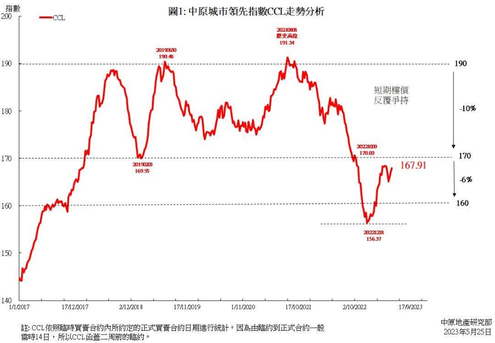短期走势上,整体楼价反复争持,CCL持续于165点到168点之间窄幅徘徊。CCL早前连跌3周后回升3周,6周累计跌0.29%。近日港元拆息高企,银行的资金成本压力增加,香港利率有机会再上调,对二手楼价的影响将于6月中旬公布的CCL才开始反映。