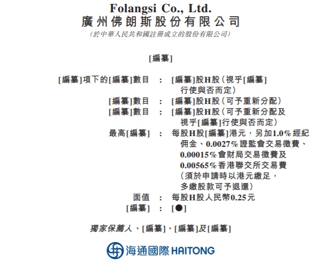 智通财经APP获悉,据港交所5月25日披露,广州佛朗斯股份有限公司(佛朗斯)向港交所提交上市申请书,海通国际为独家保荐人。