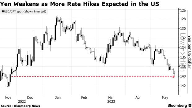 智通财经APP获悉,随着市场对美联储将于6月继续加息的预期升温,美元兑日元汇率自去年11月以来首次突破140。周五早些时候,美元兑日元汇率一度升至140.23,触及去年11月23日以来的最高水平。截至发稿,美元兑日元汇率报139.91。