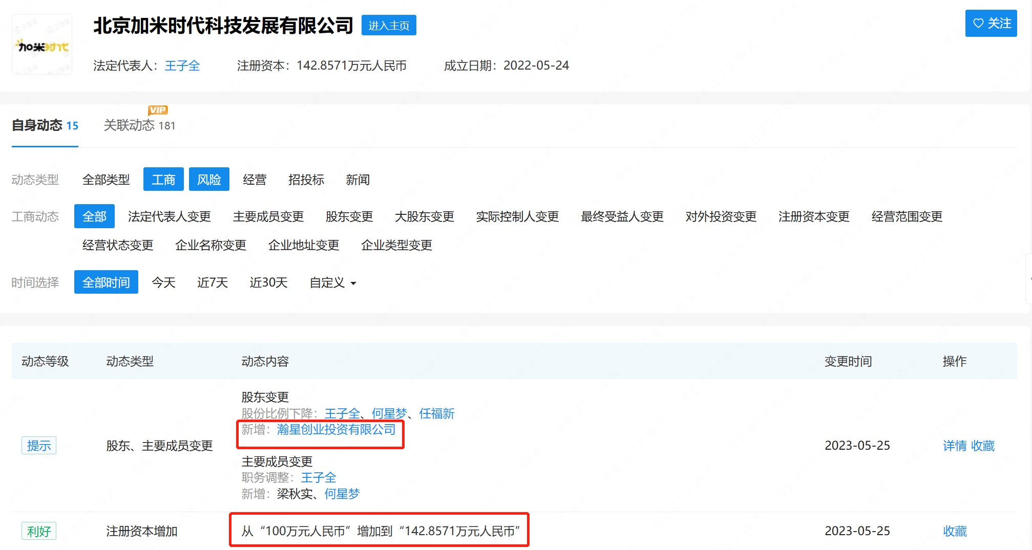 智通财经APP获悉,企查查显示,近日,北京加米时代科技发展有限公司发生工商变更,股东新增小米旗下瀚星创业投资有限公司,注册资本由100万人民币增至约142.86万人民币。据公开资料显示,该公司成立于2022年5月,是一家游戏开发商,专注于游戏服务领域,主要从事游戏开发业务,致力于为用户提供沉浸式游戏体验。