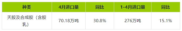 表1数据显示,2023年1-4月我国橡胶进口量持续增加,下游消耗速度迟缓,港口库存持续累加。
