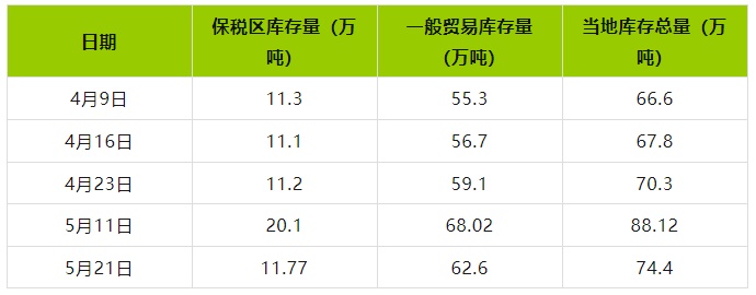 表2库存数据显示,青岛保税区库存、一般贸易库存的天然橡胶库存继续累库。其中,青岛港口天胶库存在5月11日达88.12万吨新高之后,有一定下降态势,去库拐点初现,但5月21日数据仍处于高位,总体供应压力仍不小。