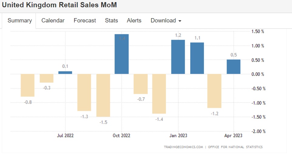 此外,英国持续高企的通货膨胀率不断打击英国消费者的消费能力。本周早些时候公布的数据显示,尽管4月份消费者价格涨幅(CPI)从3月份的10.1%放缓至8.7%,但价格降幅远小于经济学家预期。
