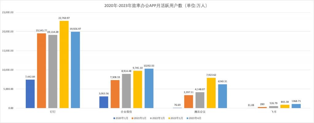 2022年3月,钉钉在首提商业化,并于年底公布付费DAU超过1500万,近期有媒体报道,现在已经不止这个数字。