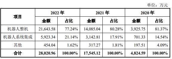 据招股书,节卡股份主营业务为协作机器人整机产品的研发、生产、销售,并从事包括集成设备及自动化产线在内的机器人系统集成业务。