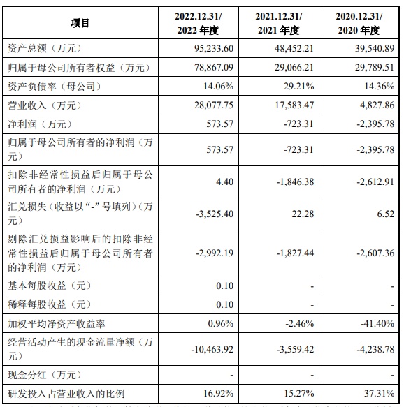 值得关注的是,公司存在经营活动现金流量净额为负的风险。2020年、2021年及2022年,公司经营活动产生的现金流量净额分别为-4238.78万元、-3559.42万元及-1.05亿元,呈持续净流出状态,主要原因为公司主营业务正处于快速发展的阶段,市场及客户在持续培育、产品与技术在不断优化。公司需要投入较多的销售费用以进行市场开拓,并不断加大研发投入以进行新产品的开发以及新技术的迭代。如公司未来经营活动现金流量净额为负的情况不能得到有效改善,公司在资金周转上将面临一定的风险,继而对生产经营和经营业绩产生不利影响。