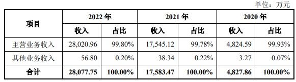 报告期内(2020年度、2021年度及2022年度),公司主营业务收入及分产品占比情况如下: