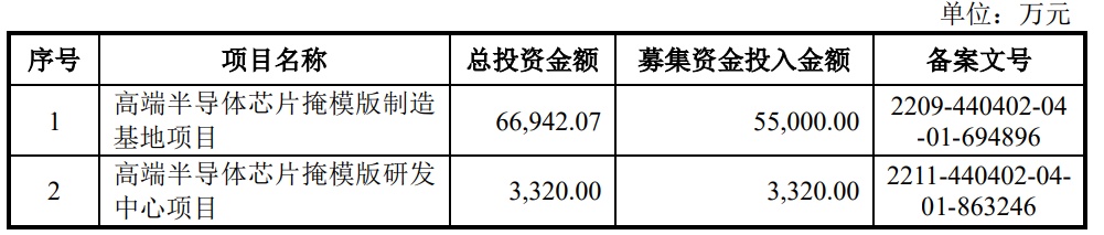 龙图光罩拟首次公开发行不超过3337.50万股人民币普通股(A股),所募集资金扣除发行费用后,将投资于以下项目: