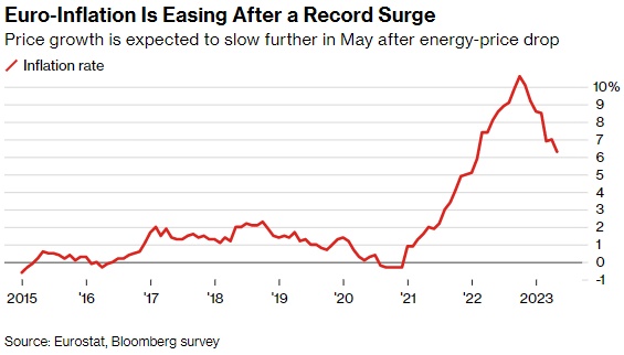 对于家庭来说,价格的好处是显而易见的。欧元区5月份的通货膨胀率可能降至6.3%,这是自俄乌冲突以来的最低水平。野村证券的经济学家表示,他们预计“整个欧元区的消费者都将看到批发能源价格的下降。”