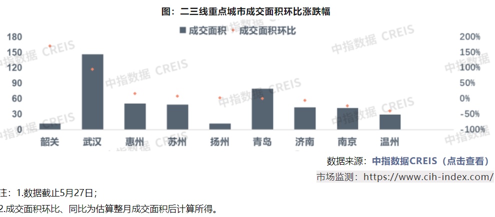 二三线城市:同环比整体上升,温州跌幅最大为39.8%