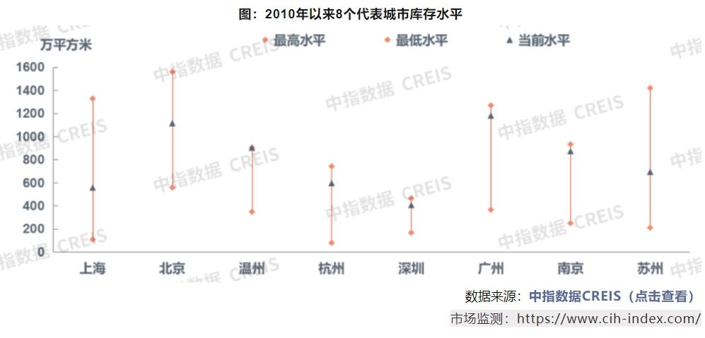 监测的8个代表城市库存面积环比整体下降1.17% 。监测的城市中,上海库存涨幅最大,为1.94%;温州涨幅次之,为1.46%;北京库存跌幅最大,为3.00%。