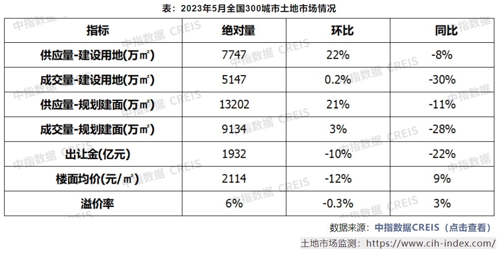 5月,监测城市总体供应量同比小幅下滑,宅地推出量同比微降,各线城市供应量同比均降;成交方面同比量跌价涨,出让金总额同比降逾两成,一线城市成交面积同比降逾四成;二线城市宅地密集入市,占据出让金总额榜单过半席位,成都揽金逾168亿领跑。