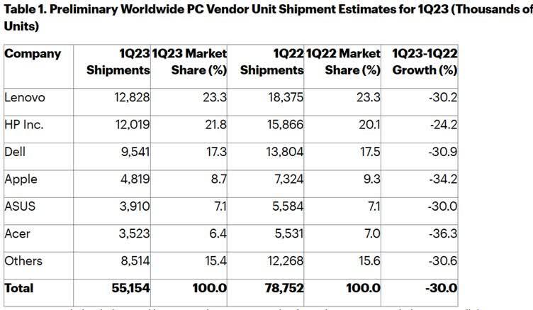 我们看到 2022 年对PC市场来说极度不利,2023年似乎也会有很多短期痛苦。然而,正如许多半导体公司报告的下半年需求逐步回暖一样,许多分析师也认为PC市场也会出现同样的情况。