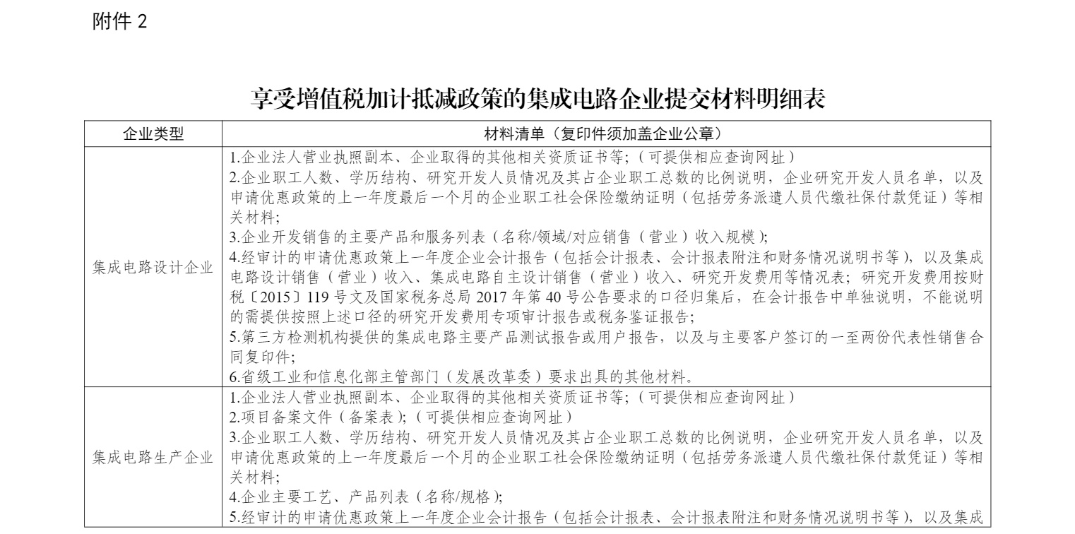 附件:1.《关于2023年度享受增值税加计抵减政策的集成电路企业清单制定工作有关要求的通知》(征求意见稿)