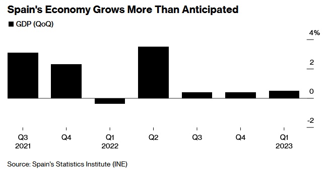 西班牙央行本月早些时候表示,它可能会将2023年的经济增长预期提高到2%以上。经济的弹性使西班牙预算部门预测,该国能够在2024年将财政赤字削减至经济产出的3%,比目标提前一年。