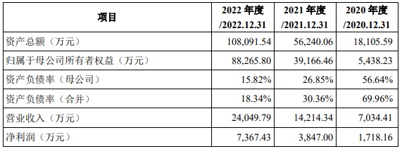 财务方面,中鼎恒盛于2020年、2021年、2022年,实现营业收入分别约为7034.41万元、1.42亿元、2.40亿元;净利润分别约为1718.16万元、3847.00万元、7367.43 万元。