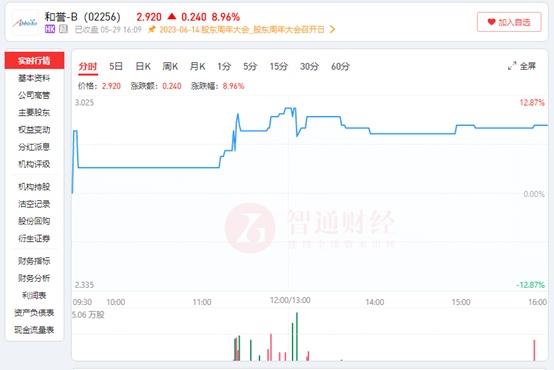 5月29日,和誉-B(02256)股价高开高走,盘中一度涨逾11%,截止收盘,和誉股价大涨8.96%,报2.92港元/股,市值重回20亿港币。深究背后的原因,或是出色的临床数据得到了市场的积极反馈。