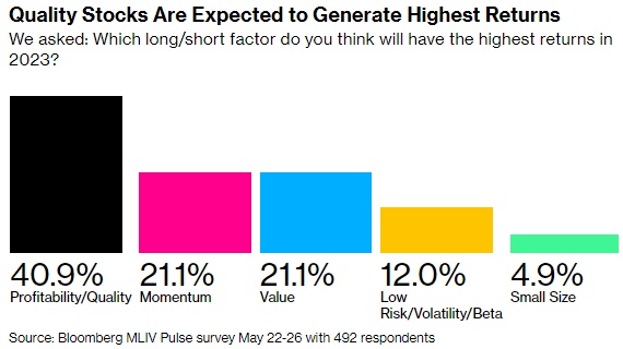 在接受调查的492名市场参与者中,约41%的投资者表示,今年的最高回报将来自于买入专注于盈利能力的优质股票,而卖出那些在这些方面令人失望的股票。这包括在苹果(AAPL.US)和微软(MSFT.US)等公司建立多头头寸。随着市场拥抱增长、避开经济敏感行业,这些公司股价飙升。