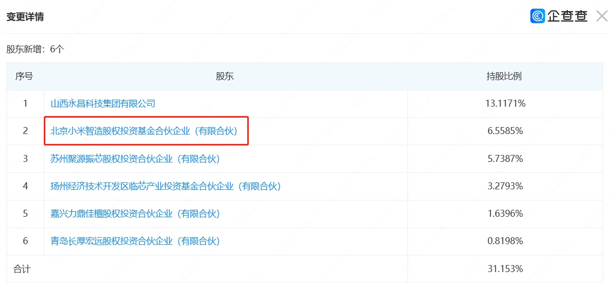智通财经APP获悉,企查查APP显示,近日,杰平方半导体(上海)有限公司发生工商变更,新增北京小米智造股权投资基金合伙企业(有限合伙)等为股东,同时公司注册资本由约5628.57万人民币增至约8175.49万人民币。据公开资料显示,该公司成立于2021年10月,是一家车载芯片设计研发商,聚焦车载芯片研发领域,主要面向电能转换、通信等领域,提供高性能碳化硅芯片、车载以太网芯片等产品。