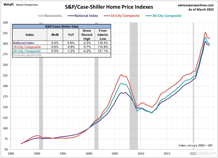S&P道琼斯指数公司总经理Craig Lazzara在一份声明中表示:“虽然连续两个月的价格上涨并不能确认房市已经复苏,但3月份的结果表明,始于2022年6月的房价下跌趋势可能已经终结。”