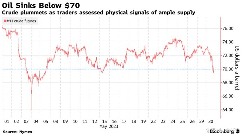 智通财经APP获悉,周二,国际油价大跌超4%,背后原因是市场对美国国会能否通过美国债务上限协议的担忧,以及主要产油国发布的混乱信息给供应前景带来的不确定性。