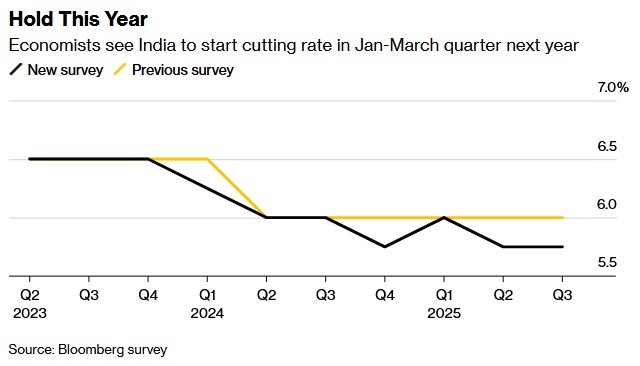 智通财经APP获悉,经济学家预计,随着通胀放缓和经济保持韧性,印度央行今年将维持利率不变,并将于明年第一季度降息25个基点。