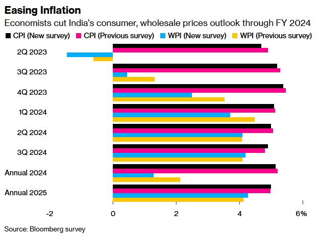 考虑到基数效应,由于物价上涨势头放缓,印度的零售通胀预计将在今年第二季度呈下降趋势。经济学家预计,印度第二季度消费者价格同比涨幅可能会放缓至4.7%,对2023财年的通胀率预测则从此前的5.21%下调至5.15%。