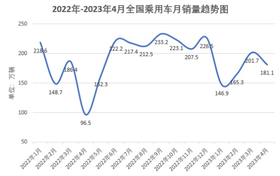 然而,看似增长的背后实际上是暗流涌动。日前,2023年4月乘用车销量公布,乘用车销量181.1万辆,同比增长87.7%、环比下降10.2%。该月度销量同比大幅增长主要因去年同期受特殊事件影响的低基数,4月数据较3月呈现环比负增长,环比下降的成因也包括4月清明节影响,以往汽车销售市场在清明月份都会呈现一定程度的回落。