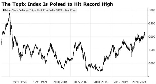 美银的预测与其他华尔街公司的预测一致,它们认为日本股市还有进一步上涨的空间。外国投资者的强烈兴趣、稳健的收益和疲软的日元应该会继续支撑东证指数的攀升。