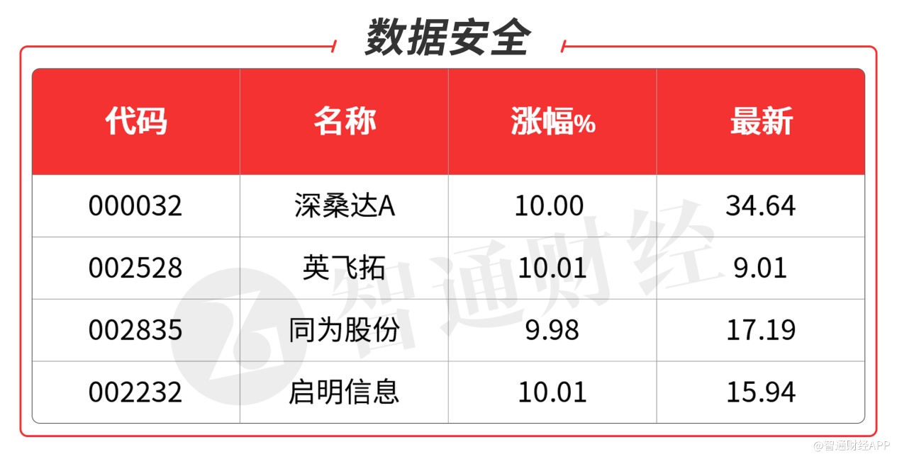 北京市政府提出,支持在依法设立的数据交易机构开展数据流通、交易。国资云、数据方向走强,绿盟科技(300369.SZ)、铜牛信息(300595.SZ)尾盘拉升获20CM涨停,深桑达A(000032.SZ)、英飞拓(002528.SZ)、启明信息(002232.SZ)等多股涨停。